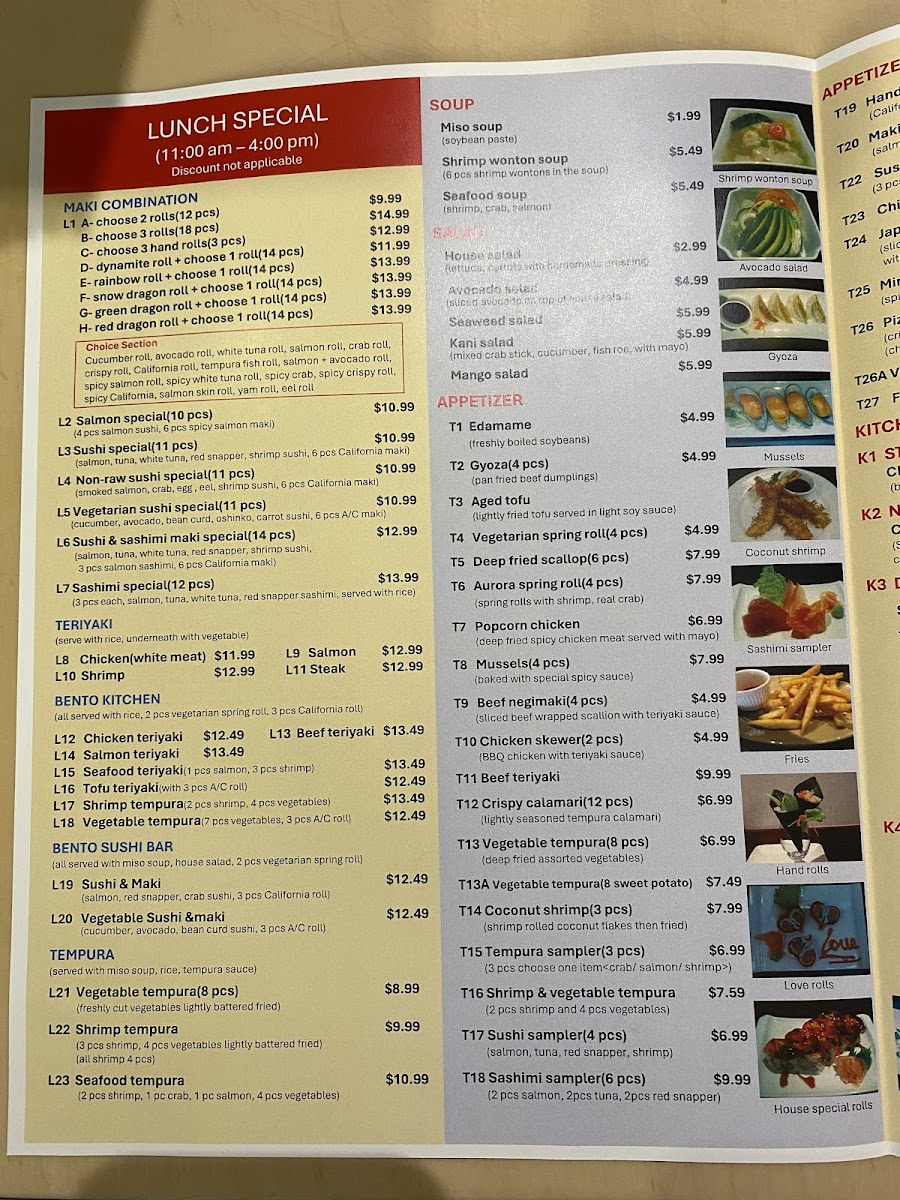 However, as with any dining establishment, experiences can vary. Rahele Movahedi Saber expressed concerns over the all-you-can-eat menu's value in terms of both quality and pricing, a gentle reminder that every restaurant has its transition phases. Yet, others, such as Wang Jacky, assert that the Sashimi all-you-can-eat menu remains one of the best offerings in Aurora, highlighting its appeal to sushi enthusiasts.